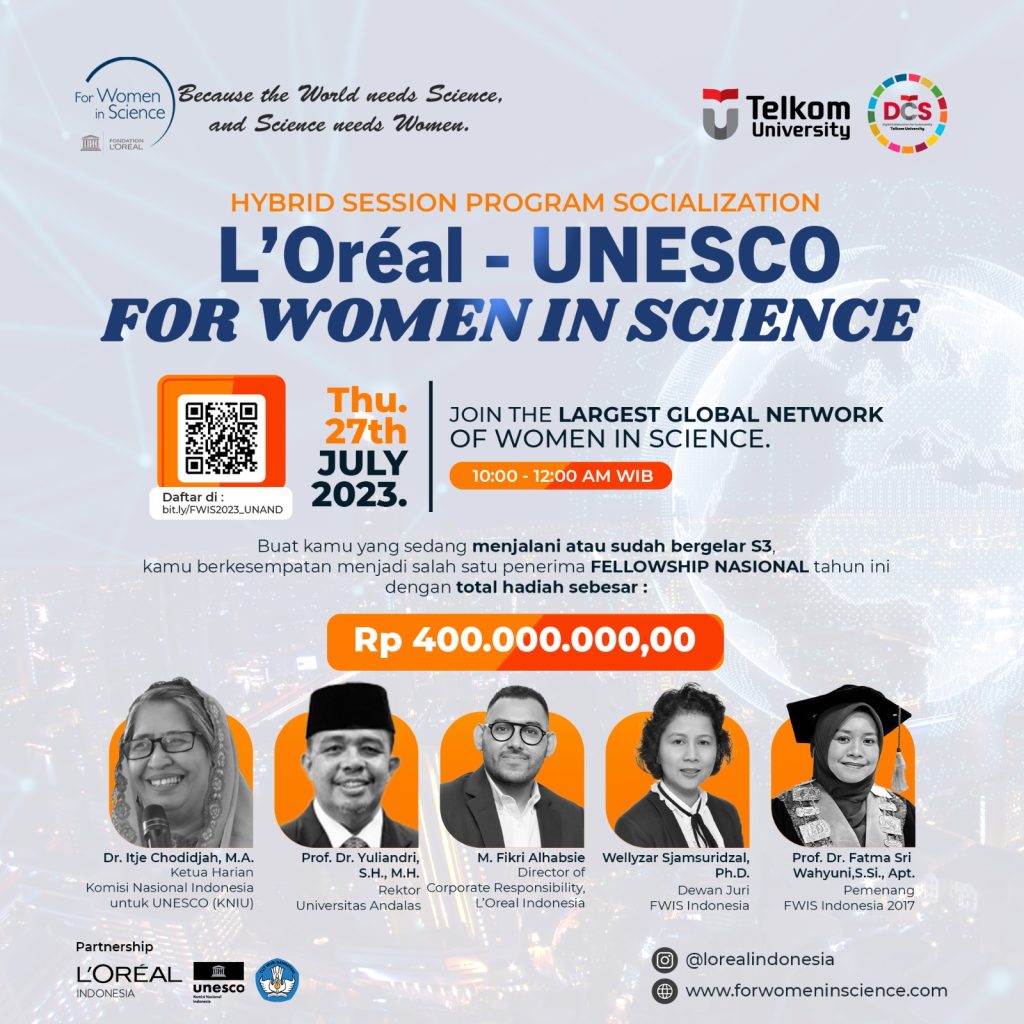 Kini Program L’Oréal-UNESCO FWIS 20223 dibuka Kembali. Mari, berpartisipasi dalam program tersebut dan hadiri Sosialisasi Program L’Oréal-UNESCO FWIS 2023 secara online dan offline.